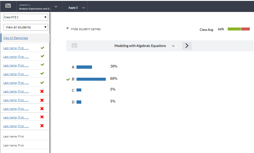 Shift support for question results to the Question level view where new navigation and information can better support the teacher for both graded and non-graded scenarios whether viewing, evaluating and grading results.